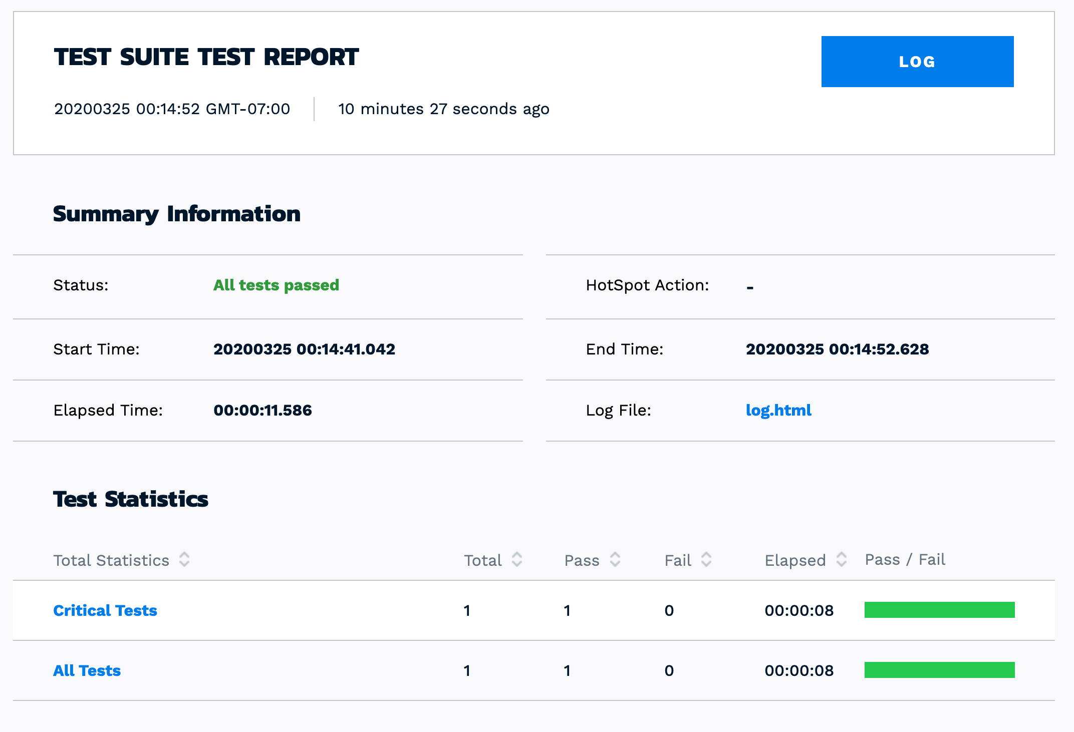 Success! As a bonus, the robot framework generates some pretty HTML reports: