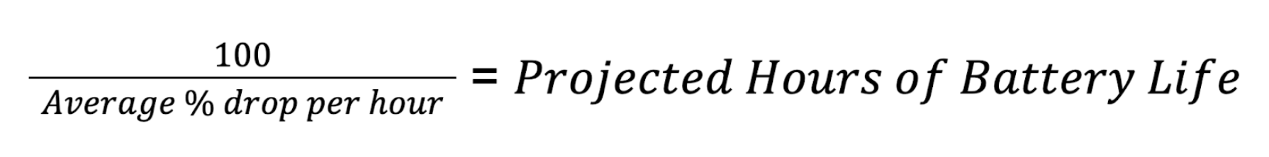 If all of these readings were during a 1-hour interval (e.g. Device A drained 3% of its battery in the first hour), then we can just add up all of the readings in which there was not an increase in the SoC, and we’ll get something around 6% battery drain on average per hour.